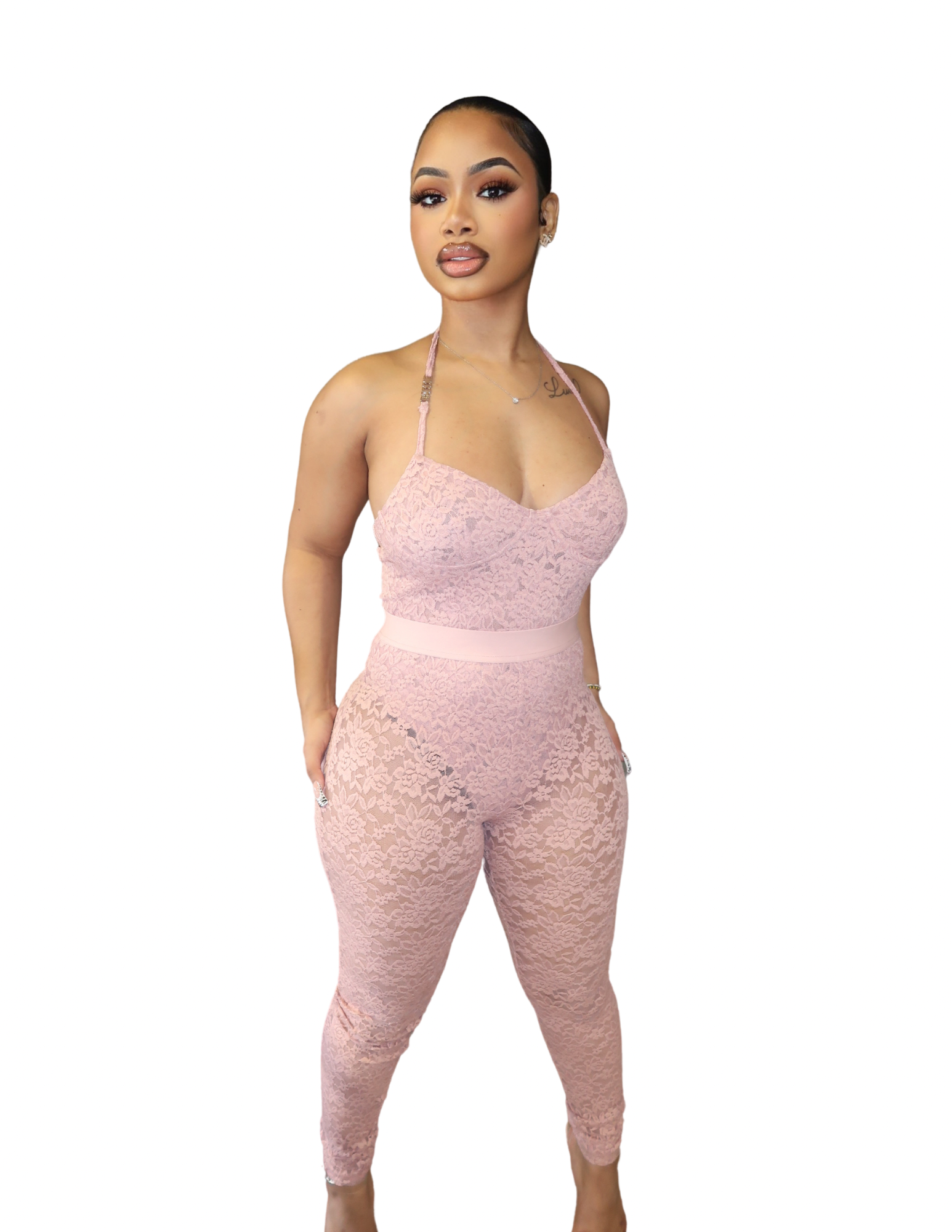 Pink Two Piece Lace Set